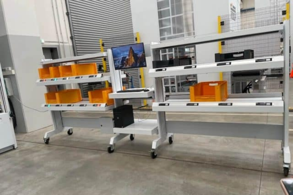 With WMS and Put to Light devices, this ergonomic picking station provides an intuitive and efficient way to quickly fulfill multiple orders